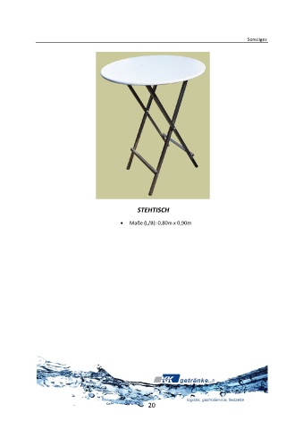 Sonstiges STEHTISCH • Maße (L/B): 0,80m x 0,90m 20
